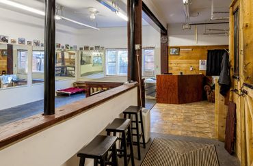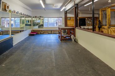 We are a private horse farm & full amenity dog training facility nestled on the North Shore of Massachusetts. We have a large grass 250 x 150 training field, 2400 sq ft heated/air conditioned rubber floored and mirrored training building, large 6ft fenced play yard, a lighted indoor arena for year round play and training 100ft x 80ft, plus 5 acres of wooded trails for hiking & horse back riding. Our horses, goats and free range chickens make for optimized distraction training.